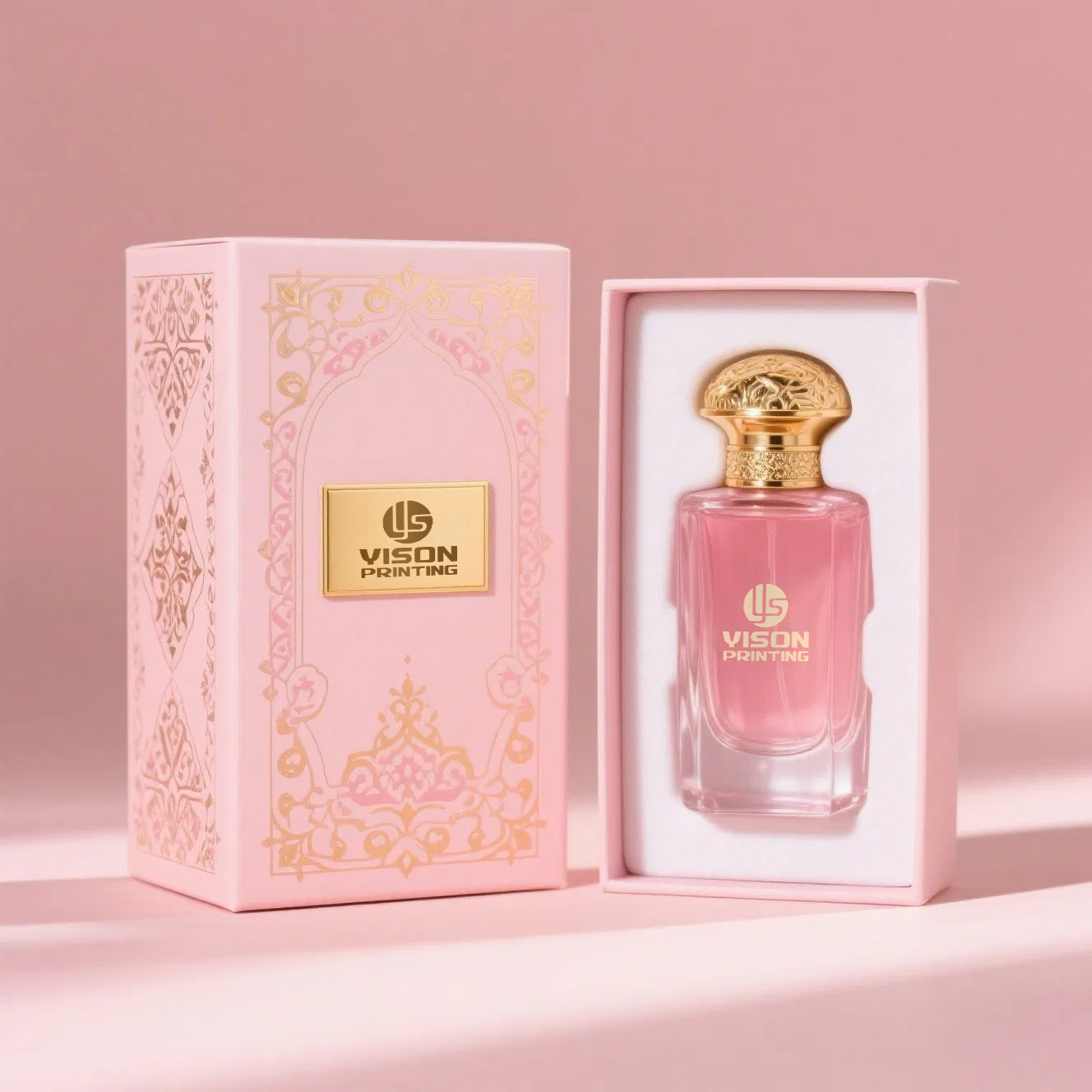 Our perfume boxes are made from premium, eco-friendly paperboard, which is both durable and sustainable. The smooth, satin-like pink finish adds an elegant touch, while the sturdy construction ensures your perfume bottles are well-protected during transit and storage.