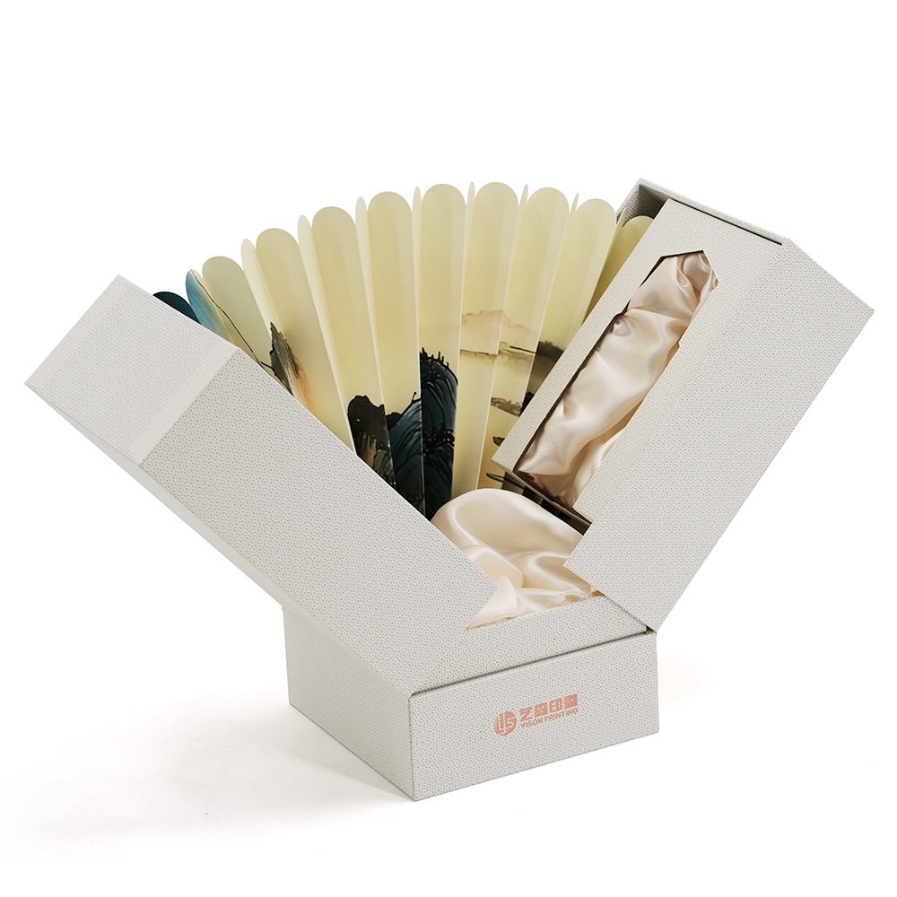 | Structure | Double door rigid box with folding fan opening design |